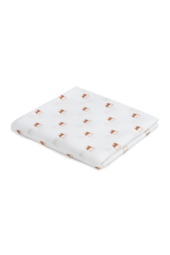 The Teddy Print Muslin Swaddle Blanket combines comfort, breathability, and timeless style—a must-have newborn essential for everyday use.
