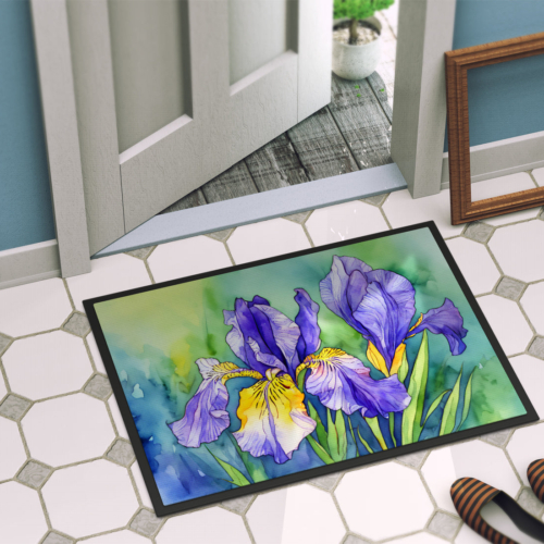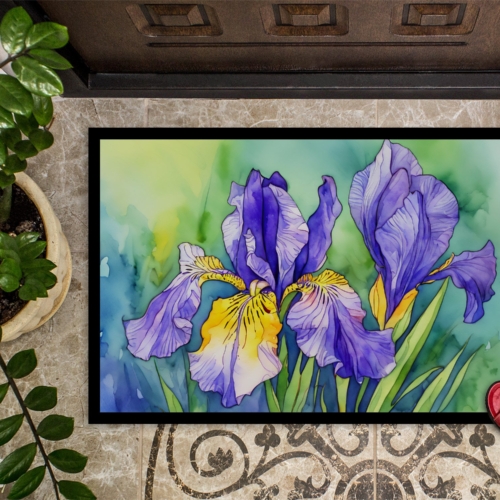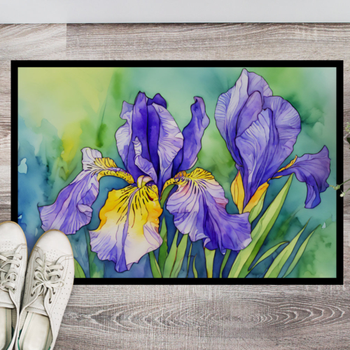 Doormat featuring breed specific Tennessee Iris artwork. Welcome your guests in style with our Artwork Door Mat, designed to withstand almost any weather condition. This mat, measuring approximately 18 by 27 inches, is held together by durable black binding tape. Its top layer, composed of polyester felt, is dyed with the eye-catching image you see on the mat. A few layers below provide the mat with stability, while its rubber bottom is stamped to help prevent slipping and ensures safety. Our mat works wonderfully as both an indoor or outdoor door mat. For cleaning, simply hose it off with water or use a power washer – no need for any cleaner that produces suds. Avoid scrubbing with a brush, instead, opt for the vacuum on floor setting. Designed manufactured and printed in the USA, this mat is a perfect addition to your porch, outdoor kitchen, entryway, or any indoor space. Its unique design makes it a charming decorative rug that greets your guests and adds a stylish touch to your home decor.