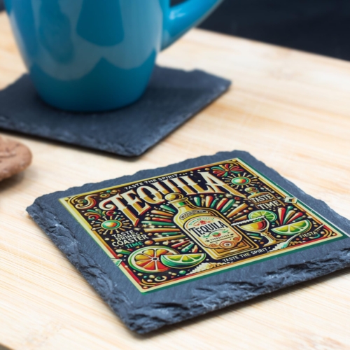 Bring the spirit of celebration to your table with this “Tequila Fiesta” Slate Coaster. Featuring a lively, colorful design that showcases tequila bottles, lime slices, and party-themed artwork, this coaster is perfect for creating a festive atmosphere. Made from durable natural slate, it offers practical functionality by protecting your surfaces while adding a bold statement to your bar or kitchen d?cor. Whether you’re hosting a party or enjoying a casual drink, this coaster is the perfect accessory to keep the vibes fun and festive. It also makes an excellent gift for tequila enthusiasts or anyone who loves a good party! Bold and Vibrant Design: Features a festive tequila-inspired graphic with lime slices, margaritas, and colorful fireworks for a fun, party-ready look. High-Quality Slate Material: Crafted from natural slate with rugged edges for a durable, stylish finish. Perfect for Entertaining: Protects your furniture from drink rings and adds a lively touch to your bar setup. Great Gift Idea: Ideal for tequila lovers, party hosts, or anyone who enjoys a vibrant bar accessory. Versatile Usage: Perfect for home bars, parties, or as a decorative piece to complement your cocktail setup.