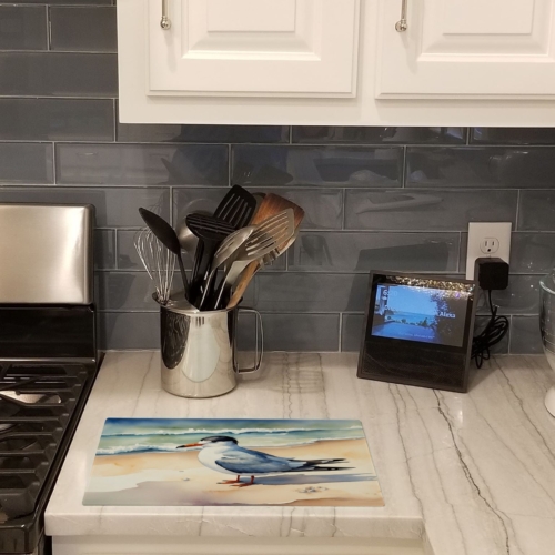 Glass Cutting Board featuring breed specific Tern artwork. Introduce your kitchen to the vibrant, large Decorative Glass Cutting Board from Caroline’s Treasures. Crafted from resilient tempered glass, this board is not only a utilitarian necessity but also a colorful art piece. With its generous dimensions of 15 inches in height and 12 inches in length, it offers ample space for all your cutting needs. Every piece showcases captivating artwork from distinguished artists, bringing an aesthetic edge to your kitchen. Beyond its attractive design, this cutting board ensures your countertop stays pristine and unscathed, owing to its heat-resistant properties. Engineered with user convenience in mind, it features non-skid feet for stability, and rounded corners for additional safety. Its robust construction renders it virtually unbreakable, guaranteeing longevity. The board comes with protective feet bumpers, maintaining its position during use. This product is recommended to be hand washed only. Proudly printed and assembled in the United States, this cutting board exemplifies superior craftsmanship. With Caroline’s Treasures’ Decorative Glass Cutting Board, you’re investing in a blend of functionality and artistic flair.