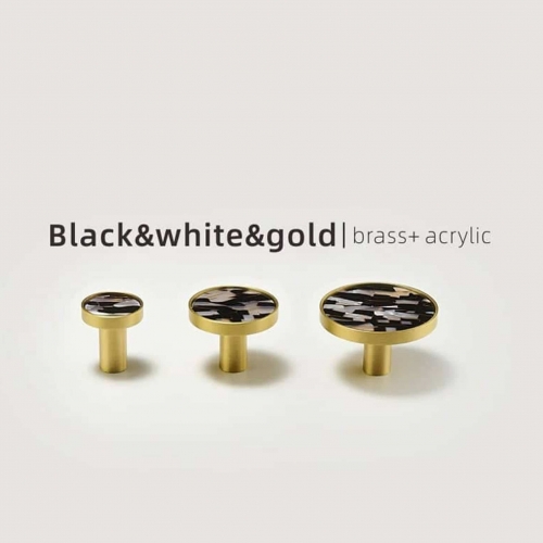 TESTA Solid Brass Acrylic & Shell Knobs / Pulls (Black, White & Gold) – Medium