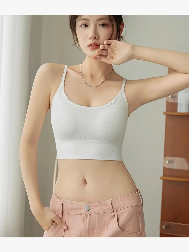 Perfect for:Loungewear brands, yoga studios, and lifestyle retailers looking for sleek, stretch-fit bras with light shaping and premium comfort for daily wear or low-impact activities. Key Features: Fabric: Ribbed nylon-spandex blend with moisture-wicking, 4-way stretch Design: Longline silhouette for extra coverage and smoothing effect Support: Integrated soft cups with seamless construction and a supportive band Straps: Slim elastic shoulder straps with stylish lettering accents Colors: Black, Charcoal Grey, Smoky Lilac, Almond Beige, Vanilla CreamSizes: Single Size Packaging Options: Standard Assorted Carton: 80 pcs Black – 2 PCSBlue – 2 PCSGrey – 2 PCSSkin – 2 PCSCream – 2 PCS Wholesale Terms: 1 pack, a total of 10 PCS for in-stock inventory 2,000+ units for logo or packaging customization 5,000+ units for full ODM/OEM options Delivery Options: Ships from U.S. warehouse (New Jersey) for quick domestic orders Direct fulfillment from Morocco or China for larger volumes