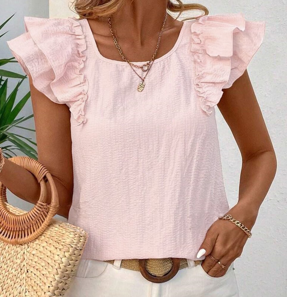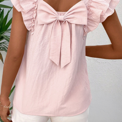 Textured Bow Knot Frilled Butterfly Sleeve Blouse – (GD8256127706 ~ PINK)