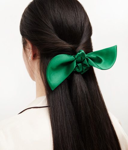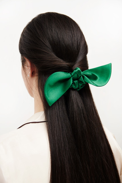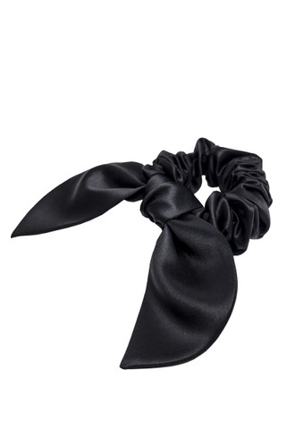 Chic and flirty bow detailed hair tie. Pure silk scrunchie holds hair up without tangling, denting, creasing or pulling at your hair, reducing breakage and split ends. Dress up your ponytail or low bun.