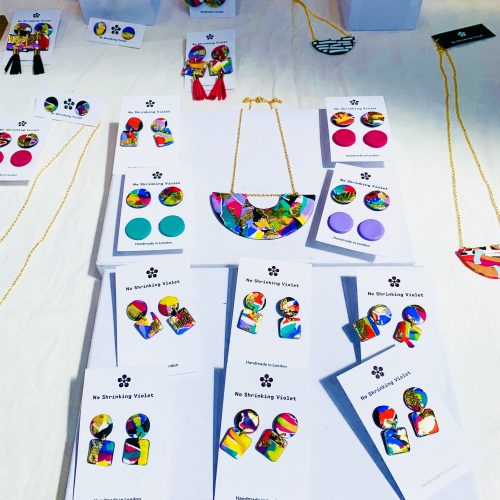 Bold and bright handmade polymer clay earrings with gold accents. A throw back to the best decade of all!up