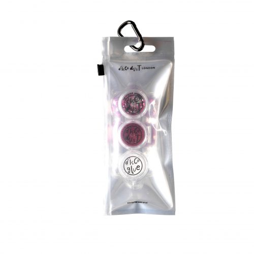 Packaged in clip-on reusable, recyclable, spill and party-proof pouches, get ready to shop our new eco glitter kits Selection of three pots (approx. 2.5g net weight of glitter or 5ml glue per pot) Includes one glue, one extra chunky angel biodegradable glitter and one fine glitter potANGEL MIX (EXTRA CHUNKY BIO)Rosey silver and pink blend, for the perfect pretty highlight! Even bigger chunks = even more glitz! Work it Queen!ROSE (FINE BIO)Rosey posey! The unicorn of them all. This gorgeous rose pink is right on trend. Give those cheeks a rosey glow!DISCO GLUE (100% NATURAL)The kinder alternate to slippy vaseline and harsh chemical adhesives, our disco glue gels are hand poured in Bristol by our disco babe Lyndsey and totally vegan friendly.