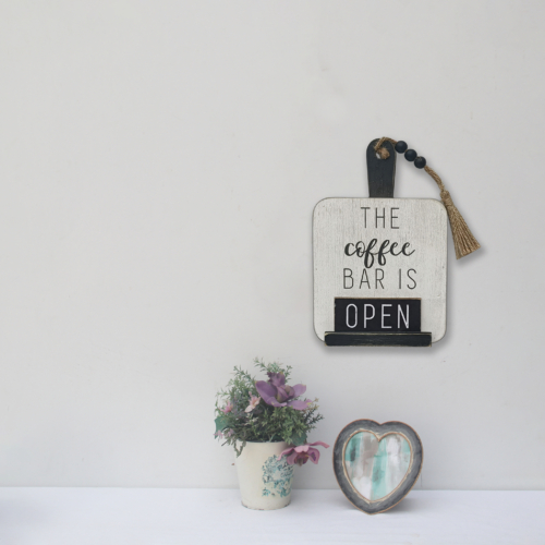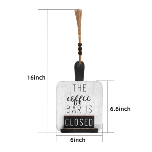 Whether you’re a coffee lover, cafe owner, or just looking for a fun decor item, The Coffee Bar Is Open/Closed Wood Wall Hanging Sign Decor is the perfect choice. Hang it in your kitchen, dining room, or coffee shop entrance to let your customers know when you’re open for business.”