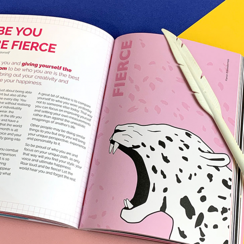 The Creative Planner measures 5.8” x 8.4” (A5 size) with a premium 350gsm cover and spot UV details on the front cover. There are three striking cover designs using 3 of Doodlemoo’s most popular art prints on cover and reverse. Inside it is printed on high-quality FSC Certified, 120gsm uncoated paper, perfect to write on. With a striking pink thread, the planner is sewn bound to allow the planner to lay flat, making it easy to write on and more durable. It includes 13 perforated pages with removable double-sided artworks and quotes for you to pull out and frame.