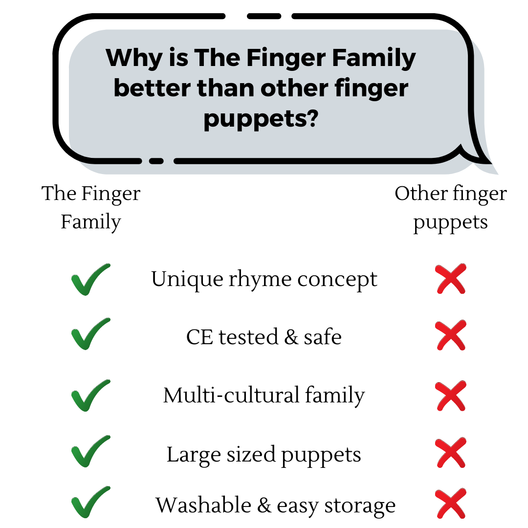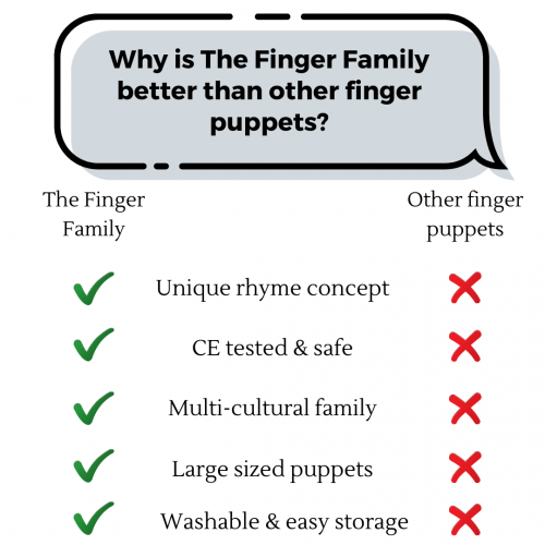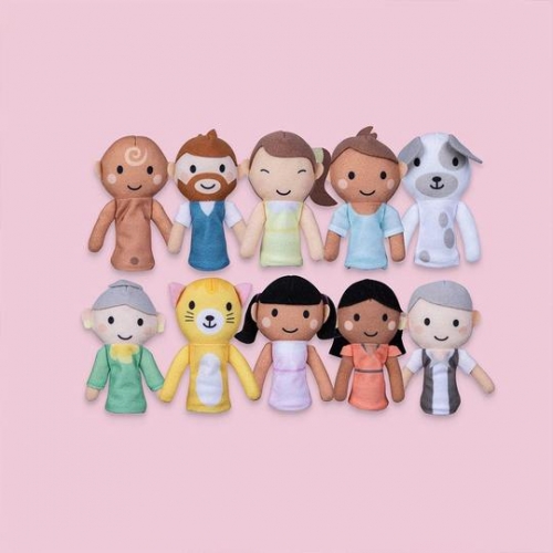 This unique set of finger family puppets is one of the ONLY set of multi cultural puppets in the market – a wonderful and rare representation of the world as it is today! This set features our special fabula family of dad, mum, brother, sister, baby, grandpa, grandma, best friend, dog and cat will not just help children recreate their own unique family, but also learn about inclusivity across cultures and capabilities.
