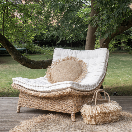 Our Fringed Carpet made with raffia, sisal and palm is left natural in colour. It will give texture and softness to a hard floor. Naturally hardwearing, it’s ideal for your kitchen, living space or covered terrace.