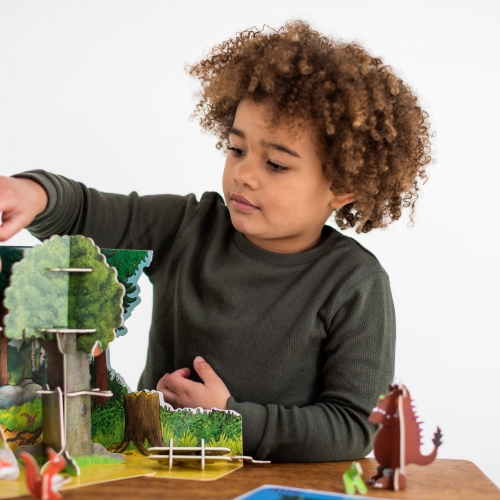Press out and play to see the much-loved story of Julia Donaldson and Axel Scheffler’s ‘The Gruffalo’ come to life. This 44 pop-out piece set is made from sturdy and sustainable Playboard which connect and slot together to create the pictured scene.