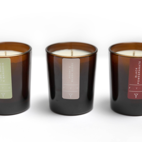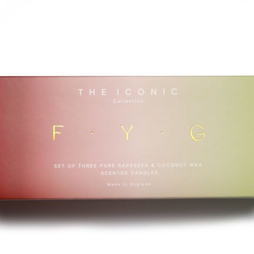 The Iconic Collection(Black Pomegranate, Peony & Blush Suede, Lime Basil & Mandarin)Meet our trio of freshly-fragranced minis from the popular Back to Basics range. Journeying from tangy Sicilian lime to fragrant peony with plum and on to juicy pomegranate tempered with spice, this elegant collection has been thoughtfully curated to celebrate luscious fruit and delicate florals – a must-have for those who delight in all things luxury. FYG candles are hand-poured, using a blend of natural, non-GMO Rapeseed and Coconut wax, all finished with a pure cotton wick. Presented in re-usable, recyclable amber glass, we proudly demonstrate our commitment to sustainability and the protection of the environment.Each set contains 3 x 75 gram votive travel size candles