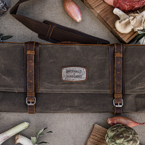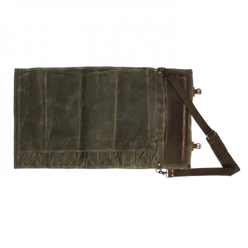 This extra-large waxed duck canvas kniferoll bag with leather detailing is a must-have for any chef, BBQ’er, butcher or caterer to safely and stylishly store or transport all beloved knives. Due to the generous dimensions of this bag, even the largest knives will fit into it.