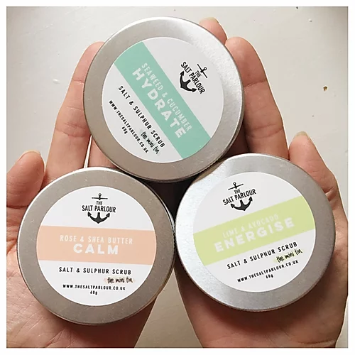 It’s simple – 3 x mini 60g tins of scrub, all snuggled up in our reusable cotton drawstring bag – perfect for travelling, gifts or treating yourself.