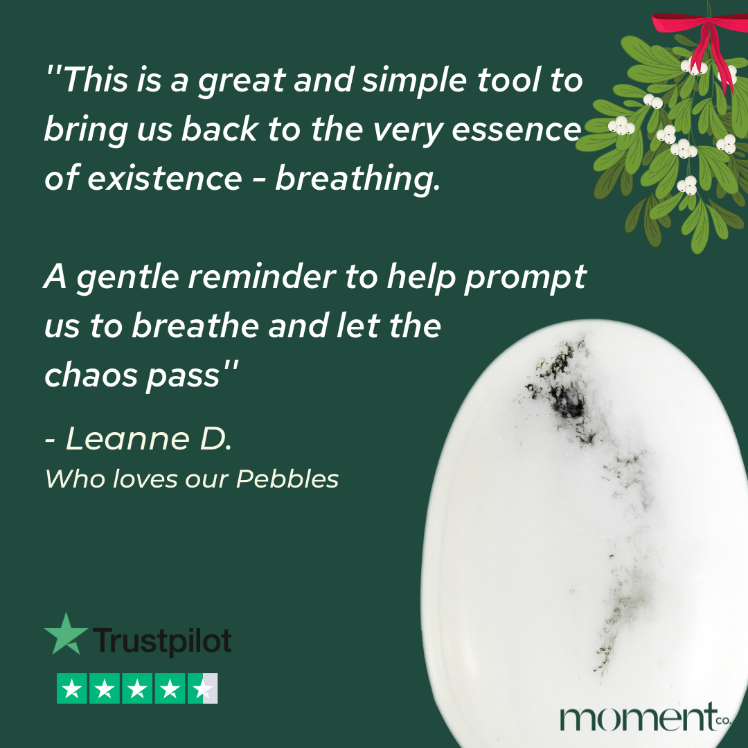 Quickly learn the skill of the mindful micropause, or Moment, with the help of the small but powerful Moment Pebble. A beautiful, hand-finished mental fitness device, designed to guide you through a scientifically proven stress-reducing Cardiac Coherence breathing sequence.