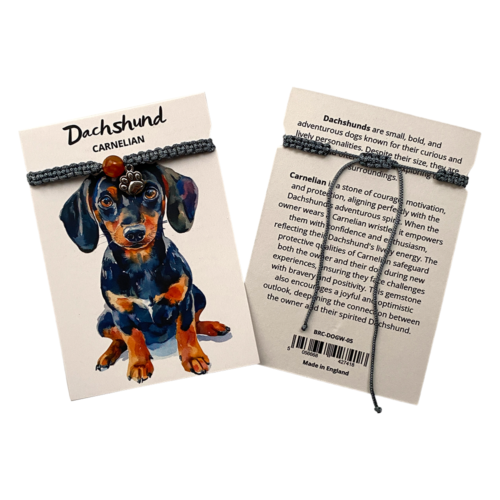 Celebrate the bond between people and pets with The Pawstone Collection Wristlet. Each card features a beautiful watercolour illustration of a beloved dog breed, paired with a gemstone wristlet chosen to reflect the unique qualities of the breed. The back of each card includes thoughtful information about the dogs traits and how they resonate with the gemstone, creating a heartfelt connection to wear or gift. Ideal for dog lovers and anyone seeking a meaningful touch of personality in their jewellery.