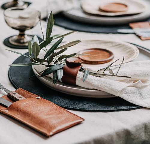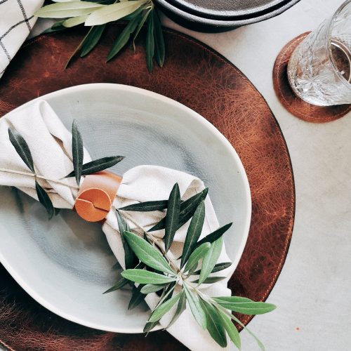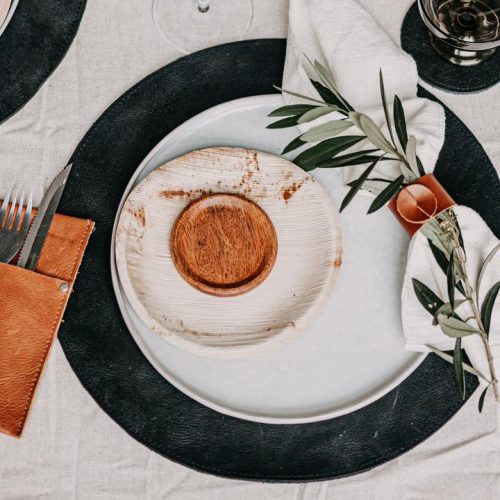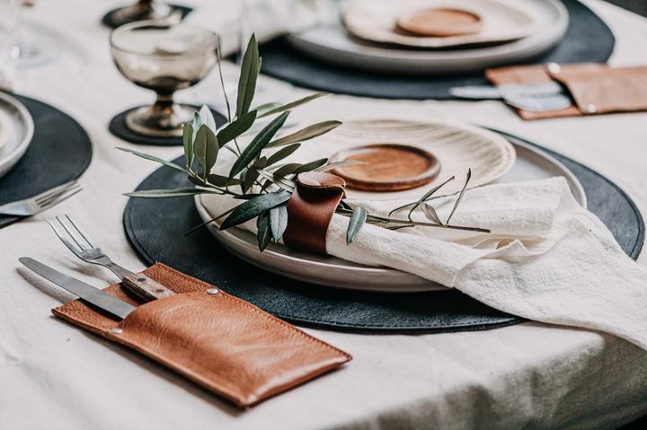 -Round buffalo leather placemat
