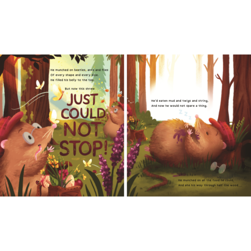 Rustling under a leafy tree, A greedy shrew could hardly see? Shrew has spent his entire life using only one sense to hunt ? his sense of smell. Until a horrible case of the flu forces him to make use of the rest of his senses. Once he hones the art of hunting ? using more than just his nose ? he can’t help but gobble up every snack in sight. The question is, can Shrew restore the forest he so dearly loves? The Shrew with The Flu is a wonderfully warm and endearing story by budding author Will Hamilton-Davies, created in partnership with illustrator Jennifer Davison. The combination of rhyming verse and rich, vibrant illustrations, makes this environmentally-themed story the perfect read-aloud for every family.
