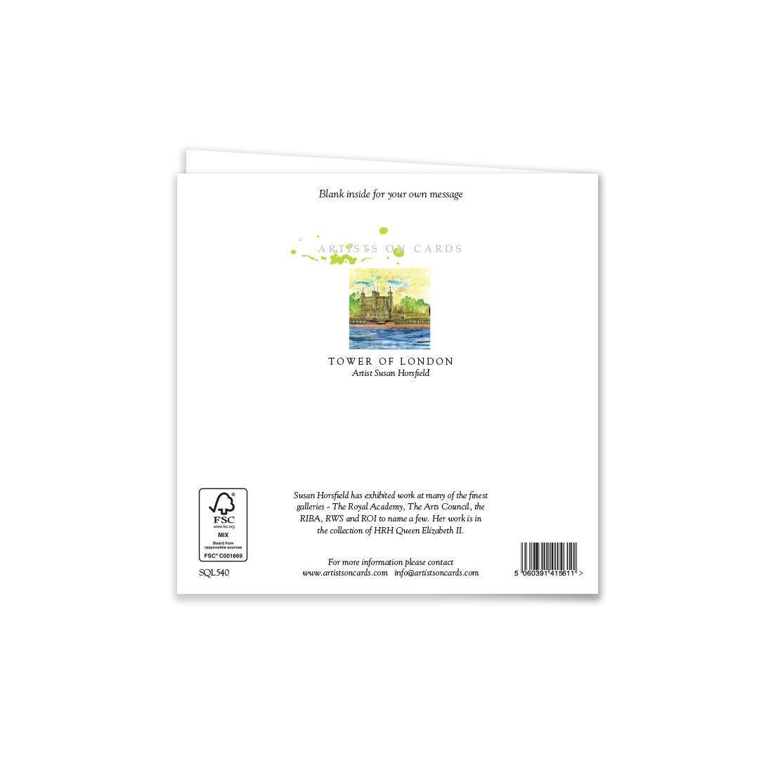 **The Tower of London**, sold in **wholesale packs of 6** . Printed on premium FSC-certified card stock, this 15x15cm card is ideal for landscape and coastal collections.