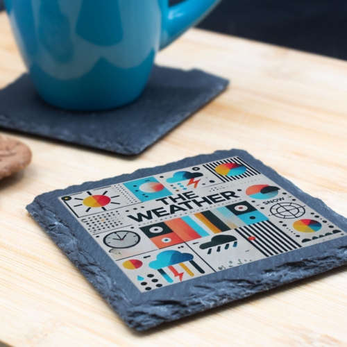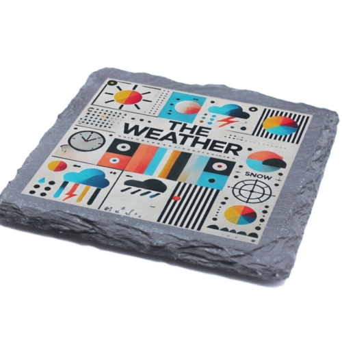 Add a splash of creativity to your home or office with “The Weather” modern slate coaster. This eye-catching piece features a dynamic design showcasing weather elements such as the sun, clouds, rain, and snow in a colorful, geometric style. Crafted from premium slate, this coaster offers both durability and sophistication, making it a practical yet stylish addition to your space. Whether you?re looking for a unique gift or a statement piece for your coffee table, this coaster is sure to impress. Ideal for protecting your surfaces while celebrating the beauty of weather in a bold, artistic way. Weather-Inspired Design: Features vibrant, modern graphics depicting various weather elements like sun, rain, clouds, and snow. Premium Slate Material: Made from high-quality natural slate, combining durability with an elegant finish. Functional & Stylish: Protects surfaces from stains and scratches while adding a contemporary touch to your decor. Perfect Gift: A creative and unique gift idea for weather enthusiasts, science lovers, or design fans. Versatile Use: Suitable for homes, offices, or cafes as a stylish accent piece or functional coaster.