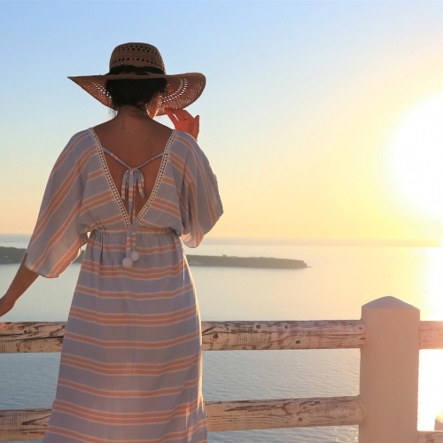 Slip on maxi dress with deep V neckline and side slits. Feature oversized pompom detail on the back. Delicate lace trim on neckline, your must have holiday dress.Fabric: viscose/cotton Cold wash recommended