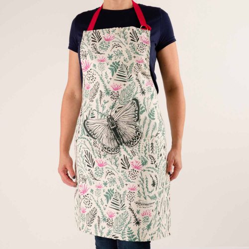 A fun and bright apron featuring wild plants, Scottish thistles and a large butterfly – perfect for Mother’s Day gifting as well as for people who enjoy bringing a little bit of nature to their kitchen!
