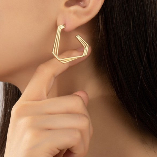 Three layer geo shape hoop overlapped earrings