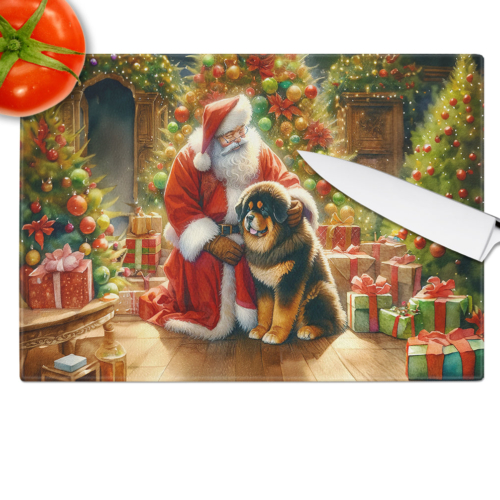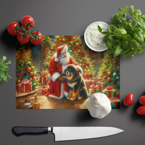 Glass Cutting Board featuring breed specific Tibetan Mastiff artwork. Celebrate Christmas with this Christmas Cutting Board. Introduce your kitchen to the vibrant, large Decorative Glass Cutting Board from Caroline’s Treasures. Crafted from resilient tempered glass, this board is not only a utilitarian necessity but also a colorful art piece. With its generous dimensions of 15 inches in height and 12 inches in length, it offers ample space for all your cutting needs. Every piece showcases captivating artwork from distinguished artists, bringing an aesthetic edge to your kitchen. Beyond its attractive design, this cutting board ensures your countertop stays pristine and unscathed, owing to its heat-resistant properties. Engineered with user convenience in mind, it features non-skid feet for stability, and rounded corners for additional safety. Its robust construction renders it virtually unbreakable, guaranteeing longevity. The board comes with protective feet bumpers, maintaining its position during use. This product is recommended to be hand washed only. Proudly printed and assembled in the United States, this cutting board exemplifies superior craftsmanship. With Caroline’s Treasures’ Decorative Glass Cutting Board, you’re investing in a blend of functionality and artistic flair.