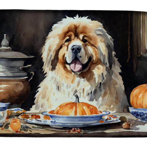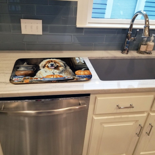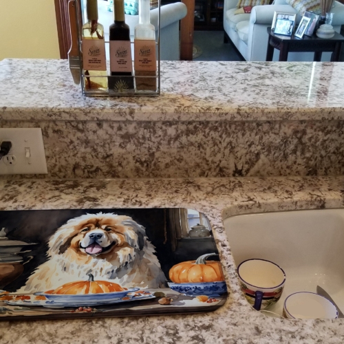Dish Drying Mat featuring breed specific Tibetan Mastiff artwork. Celebrate Halloween with this Halloween Dish Drying Mat. Say goodbye to messy countertops and soggy dish towels with our innovative dish drying mat. Our high-quality dish drying pad is designed to keep your countertops dry while offering a stylish and efficient solution. Whether you’re air drying dishes, glasses, stemware, silverware, pots, pans, bottles, or even fruits and vegetables, our dish mat is the perfect choice. The 14 inches x 22 inches size fits most counters and dish drying racks, and the non-slip design ensures stability. Made with water-absorbent polyester and a polyurethane foam insert, our dish drying mat is not only functional but also durable. It’s machine washable and printed in the USA for long-lasting use. The beautiful artwork adds flair to your kitchen decor, making it a perfect housewarming gift or present for any occasion. Upgrade your kitchen experience with our absorbent and versatile dish drying mat.