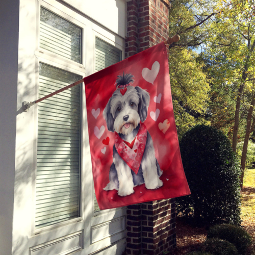 House Flag featuring breed specific Tibetan Terrier artwork. Celebrate Valentine’s Day with this Valentine’s Day Large Flag. Presenting our Heavy Duty Polyester House Size Decorative Sleeve Pole Flag, a vibrant addition to enhance the aesthetic appeal of your home. This large decorative flag, measuring approximately 28 x 40 inches, offers ample coverage and visibility. Each flag is meticulously sewn and made individually, ensuring a unique piece that may slightly vary in size. It’s a sleeve pole flag, designed to fit a standard decorative flag pole effortlessly. Please note that the flag pole and bracket are not included and should be purchased separately. What sets our flag apart is its dual-sided print. The design is mirrored on both sides of the fabric, allowing for uniform visibility regardless of the angle. Printed in full color, our flag showcases vibrant hues that truly stand out. To ensure lasting vibrancy and durability, the dyes are heat-set into the fabric. This ensures your flag remains bright and captivating through various weather conditions. Elevate the look of your home with our Heavy Duty Polyester House Size Decorative Sleeve Pole Flag!