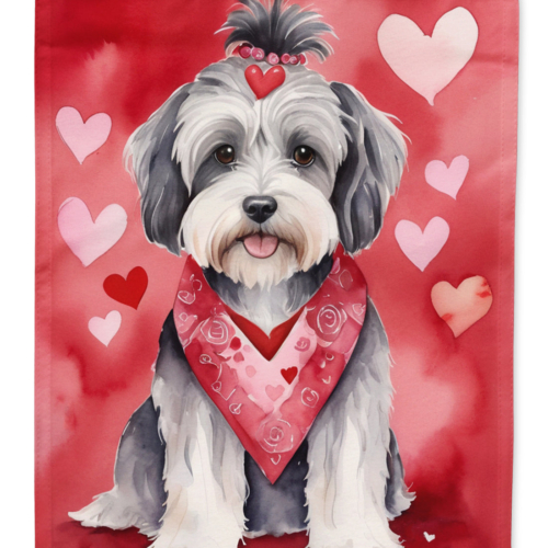 House Flag featuring breed specific Tibetan Terrier artwork. Celebrate Valentine’s Day with this Valentine’s Day Large Flag. Presenting our Heavy Duty Polyester House Size Decorative Sleeve Pole Flag, a vibrant addition to enhance the aesthetic appeal of your home. This large decorative flag, measuring approximately 28 x 40 inches, offers ample coverage and visibility. Each flag is meticulously sewn and made individually, ensuring a unique piece that may slightly vary in size. It’s a sleeve pole flag, designed to fit a standard decorative flag pole effortlessly. Please note that the flag pole and bracket are not included and should be purchased separately. What sets our flag apart is its dual-sided print. The design is mirrored on both sides of the fabric, allowing for uniform visibility regardless of the angle. Printed in full color, our flag showcases vibrant hues that truly stand out. To ensure lasting vibrancy and durability, the dyes are heat-set into the fabric. This ensures your flag remains bright and captivating through various weather conditions. Elevate the look of your home with our Heavy Duty Polyester House Size Decorative Sleeve Pole Flag!