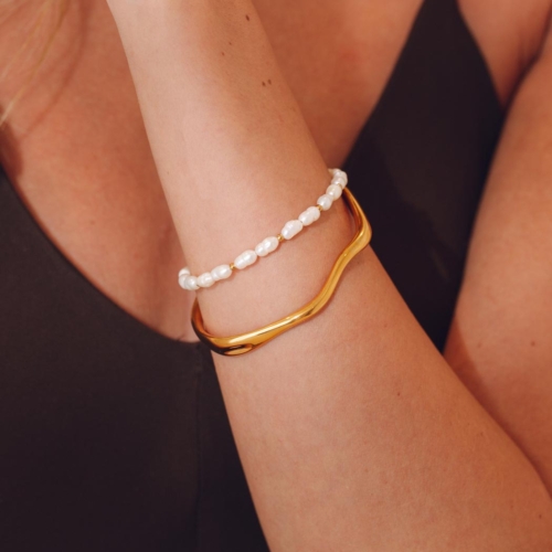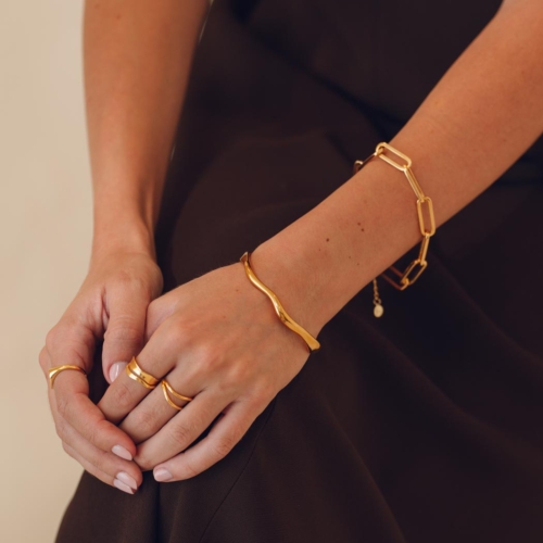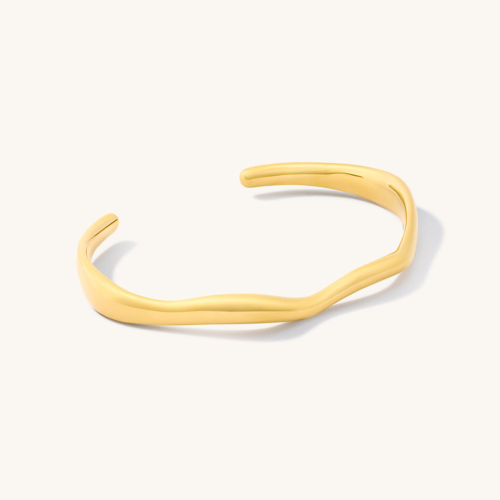 Sleek with a subtle wave, the Tidal Cuff brings ocean energy to your stack. Its fluid shape is inspired by shifting tides—easy to wear, easy to style, and perfect for catching the light on sun-soaked days. MATERIALS : 18k gold plated recycled brass SIZING : 6″ adjustable