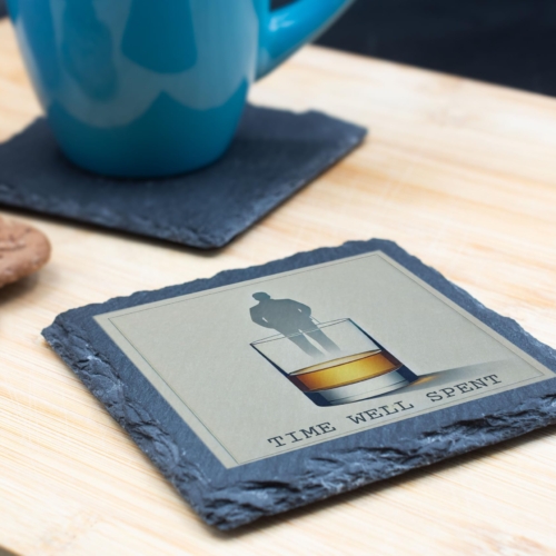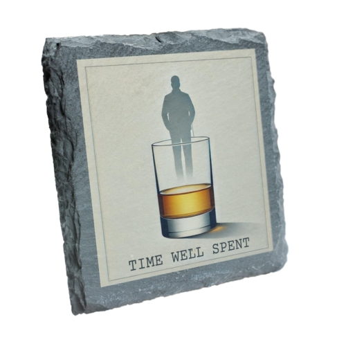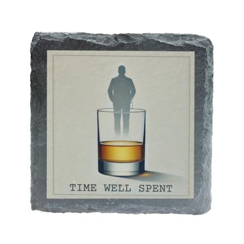 Celebrate life’s quiet moments with this stunning “Time Well Spent” Slate Coaster. Designed for those who enjoy the finer things, this coaster features a minimalist illustration of a whiskey glass with a thoughtful silhouette reflection, accompanied by the evocative phrase “Time Well Spent.” The perfect accessory for whiskey enthusiasts and lovers of refined decor, this coaster exudes sophistication and elegance. Crafted from premium natural slate, it offers a stylish yet practical way to protect your furniture from drink condensation and spills. Whether as a centerpiece on your bar or a thoughtful gift for a special occasion, this coaster is sure to impress. Add a touch of class to your evenings and make every drink a moment to savor. Sophisticated Design: Features a minimalist whiskey glass artwork with a reflective silhouette and the phrase “Time Well Spent.” High-Quality Slate Material: Handcrafted from durable natural slate, providing a sturdy base for your favorite drinks. Perfect Gift Idea: Ideal for whiskey lovers, enthusiasts, or anyone who appreciates refined and meaningful decor. Functional & Stylish: Protects your surfaces while adding an elegant touch to your bar, office, or living space. Versatile Use: Suitable for glasses, mugs, and tumblers, making it a must-have for any beverage enthusiast.