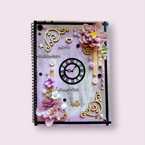 A truly unique journal inspired by the beauty of music and time. The handcrafted cover features a striking clock motif, layered flowers, and musical details that make this piece stand out. Inside, you’ll find 80 lined pages, ideal for journaling, note-taking, or sketching. This notebook is more than stationery – it’s a personal work of art, designed to be treasured.