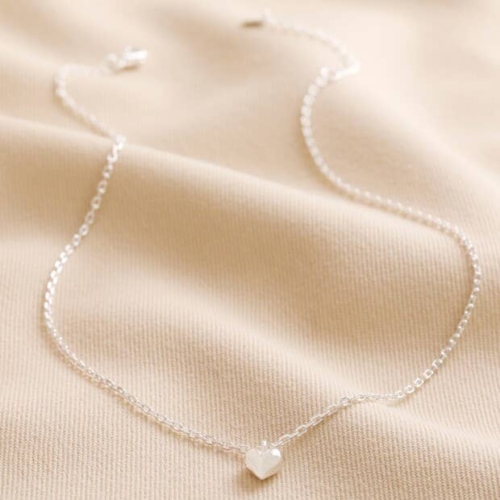 A rounded heart-shaped pendant with a super shiny finish is suspended on a delicate trace chain. Dimensionschain length – 40.5cm (16″) with a 5cm extender chainpendant – width 7mm x height 10mm x depth 5mmMade fromsterling silver plated brass
