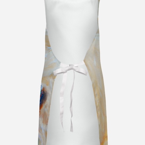 Elevate your cooking, baking, and grilling experiences with our versatile Kitchen or BBQ Apron. This Bib Style apron isn’t just limited to culinary activities – it also serves as an excellent baking apron, artist apron, server apron, gardening apron, or even a dog grooming apron. The apron showcases vibrant full-color artwork contributed by one of our talented artists, bringing a dash of style to your daily tasks. With dimensions of approximately 27″W x 30″H, it provides ample coverage to protect your clothing from spills and splashes. Our apron is meticulously crafted from 100% Ultra Spun Polyester, known for its durability and lightweight nature. The apron comes with white tie straps, ensuring a comfortable and adjustable fit for all. It’s a perfect choice for kitchen apron enthusiasts, whether you are a woman or a man. Designed for easy maintenance, this apron is fully machine washable. The quick-drying polyester material actively reduces staining, keeping your apron looking fresh and new for longer. Our beautifully designed apron isn’t just a functional kitchen accessory – it’s a fashion statement in the culinary world!