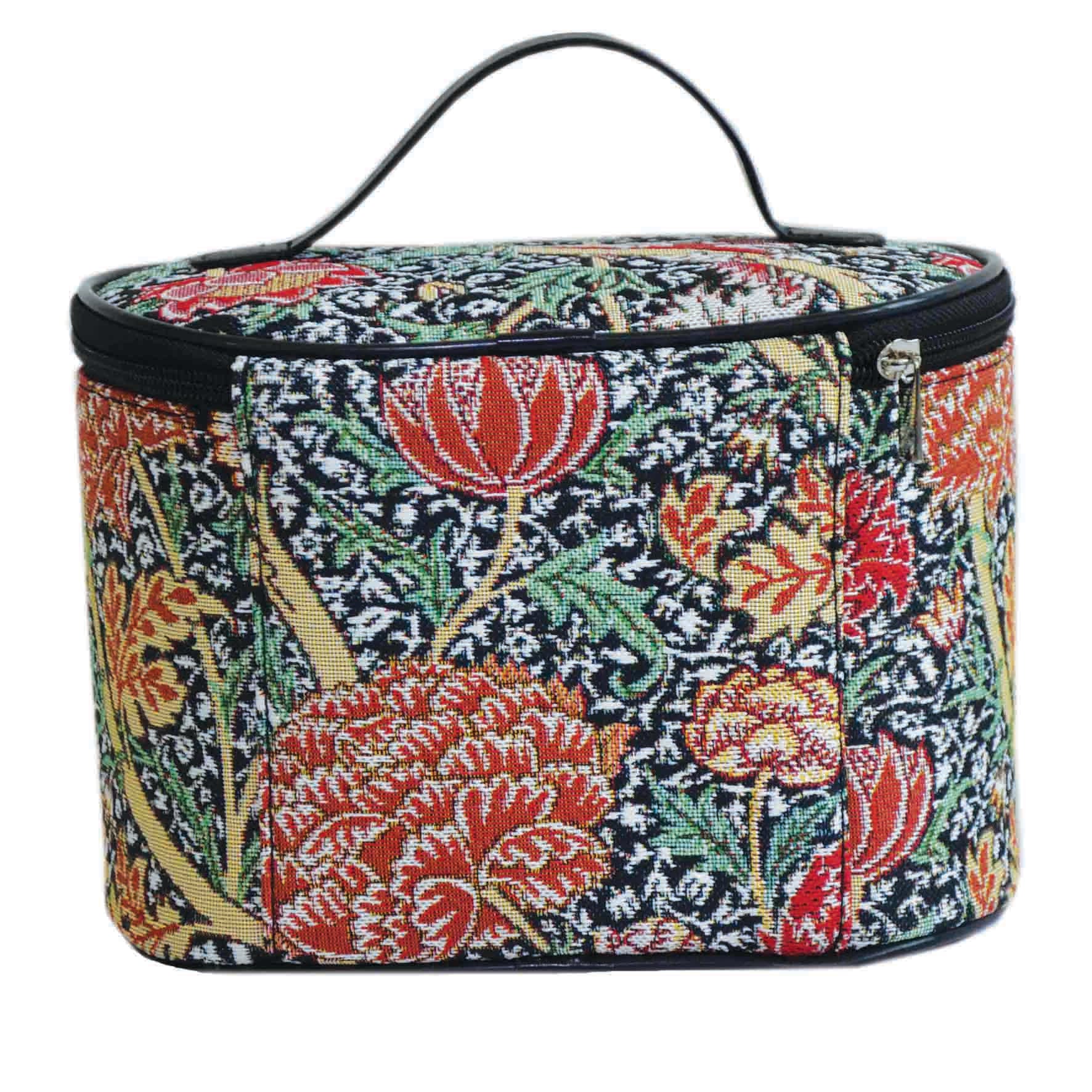 A single layer tapestry beauty bag with a large capacity; ideal for storing toiletries, cosmetics and make-up.