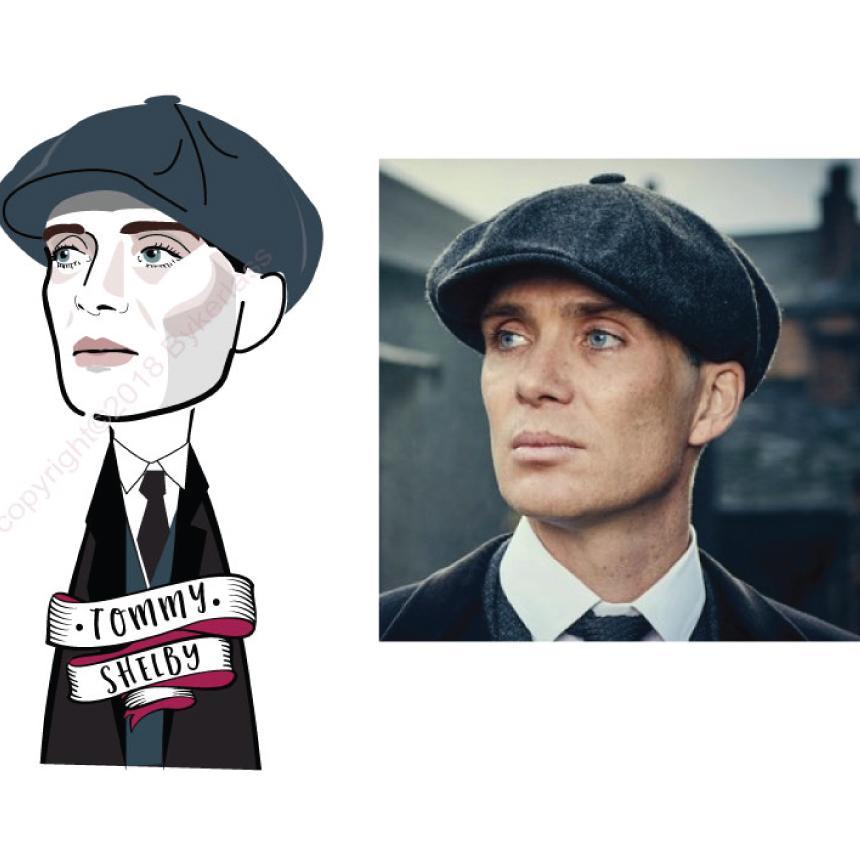 Fabulous illustrative wooden keyring capturing the likeness and spirit of Cillian Murphy’s iconic Peaky Blinder character Tommy Shelby.