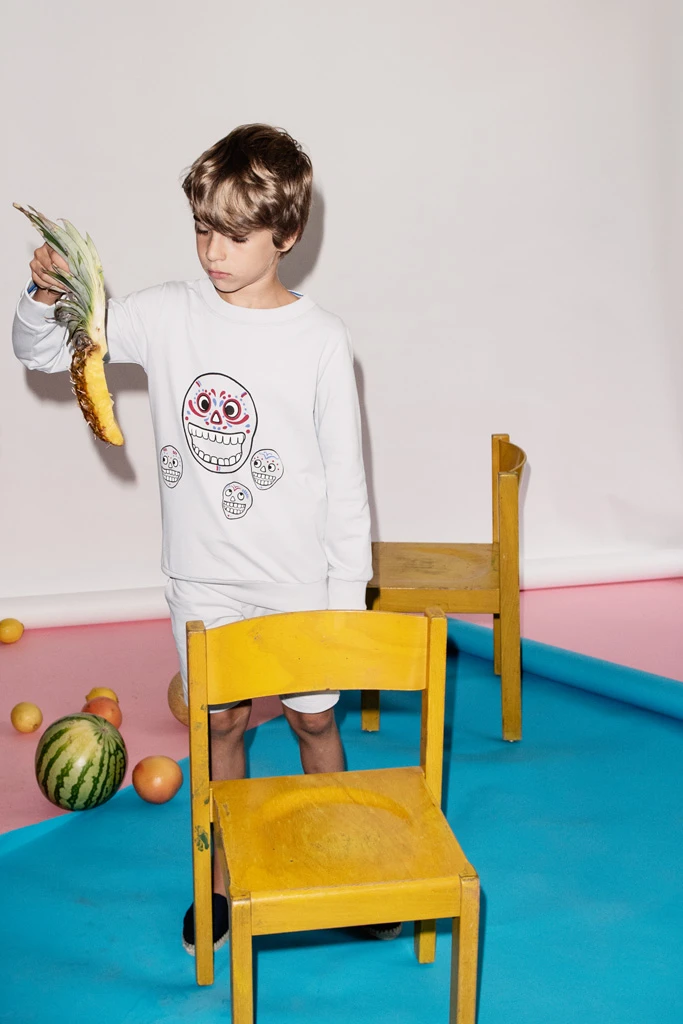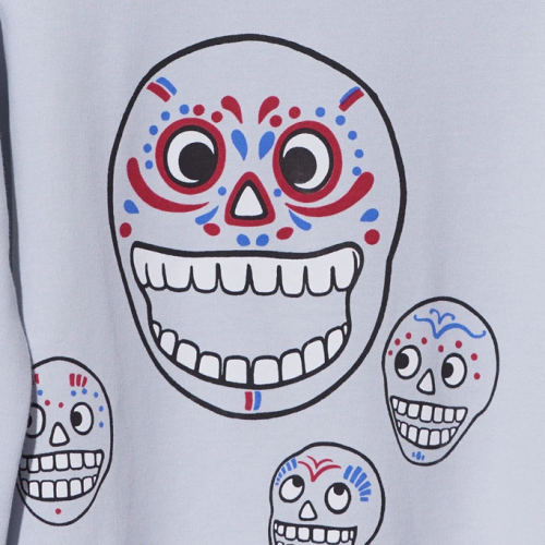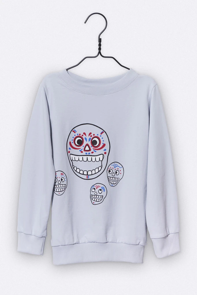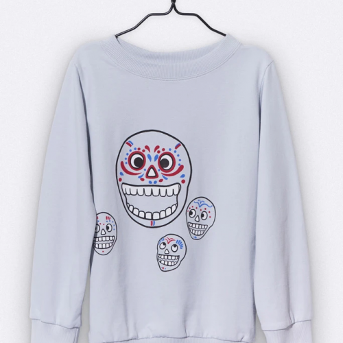 The Tommy sweater is an easy to wear item that goes well with anything and anywhere. Made of grey fleece jersey with our Mexican skull print, it makes the perfect match with the Tommy shorts.
