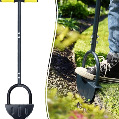 IDEAL FOR EDGING WALKWAY AND GARDEN — easy to use and make your yard lines Neat, Trim, and Tidy. Create deep, clean borders along sidewalks, driveways, patios, gardens, and grass lawns. Also useful for installing plastic edging. This manual edger lawn tool is planet-friendly and low-maintenance.ARCHED BLADE WITH SAW TOOTH — steel blade with saw-tooth slices through dense turf easily & cleanly. Powder coated durable steel construction of lawn edger ensure durable & long lasting use.LARGE FOOT PLATFORM — step edger with an extra-wide Foot Platform makes it easy to maximize force with your body weight, brings optimal digging safety and performance.SAVES YOUR BACK & KNEES — 39″ edger lawn tool with long handle, lets you edging without having to bend over or go down to your knees. T-handle with soft cushion for comfort & better maneuverability.