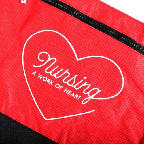 With a spacious interior measuring 12.5 x 11.25 x 6 inches, this tote bag is ideal for carrying everything from medical essentials and books to laptops and personal items. The bold red background with embroidered Nursing is a Work of Heart lettering creates a striking design that stands out, making it an excellent gift for nurses, students, or anyone in the medical field.