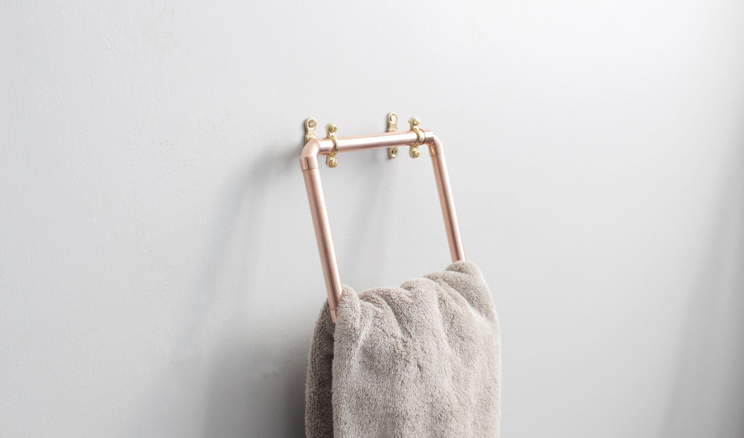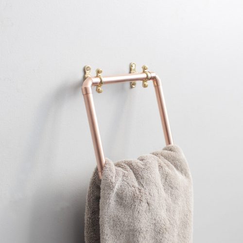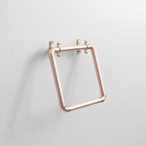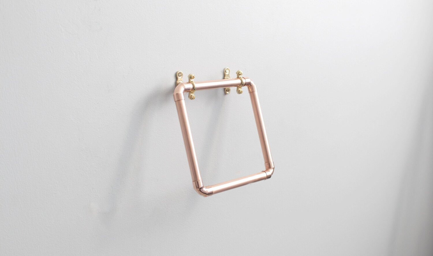 Handmade in England, this copper pipe towel hoop is the perfect way to add a modern yet industrial touch to your bathroom. The towel hoop is secured to the wall using luxury solid brass fittings, which can be used to either lock the hoop in place, or allow it to hinge freely.
