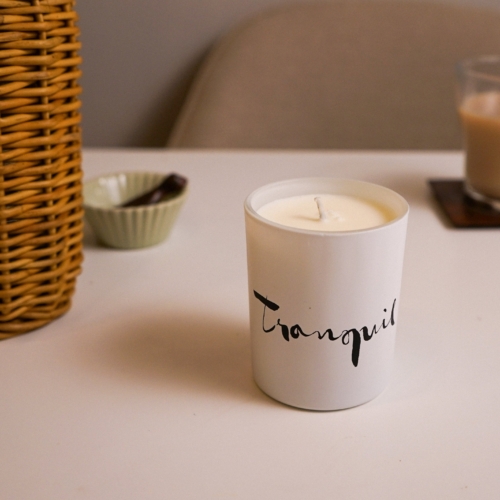 Creating a tranquil atmosphere with an essential oil blend of lavender and bergamot – relaxing, uplifting and bringing back a home sweet home mood. Hand poured natural wax in a white candle glass with a tranquil brush painting design. Notes : Lavender and bergamot 100% Natural, Vegan & Cruelty FreeHand Poured in England