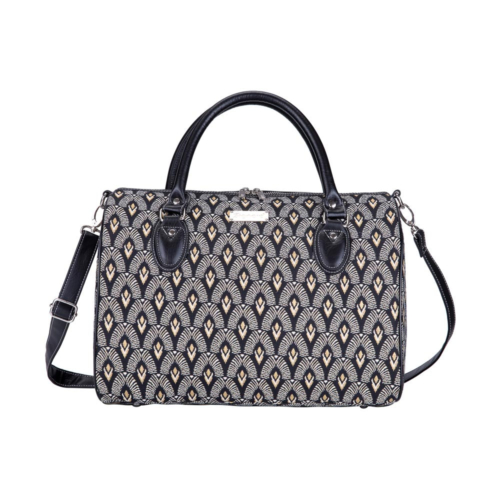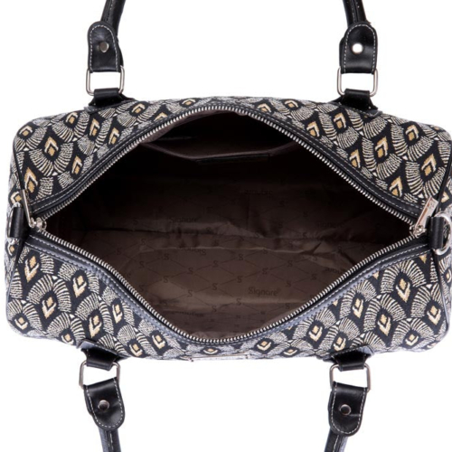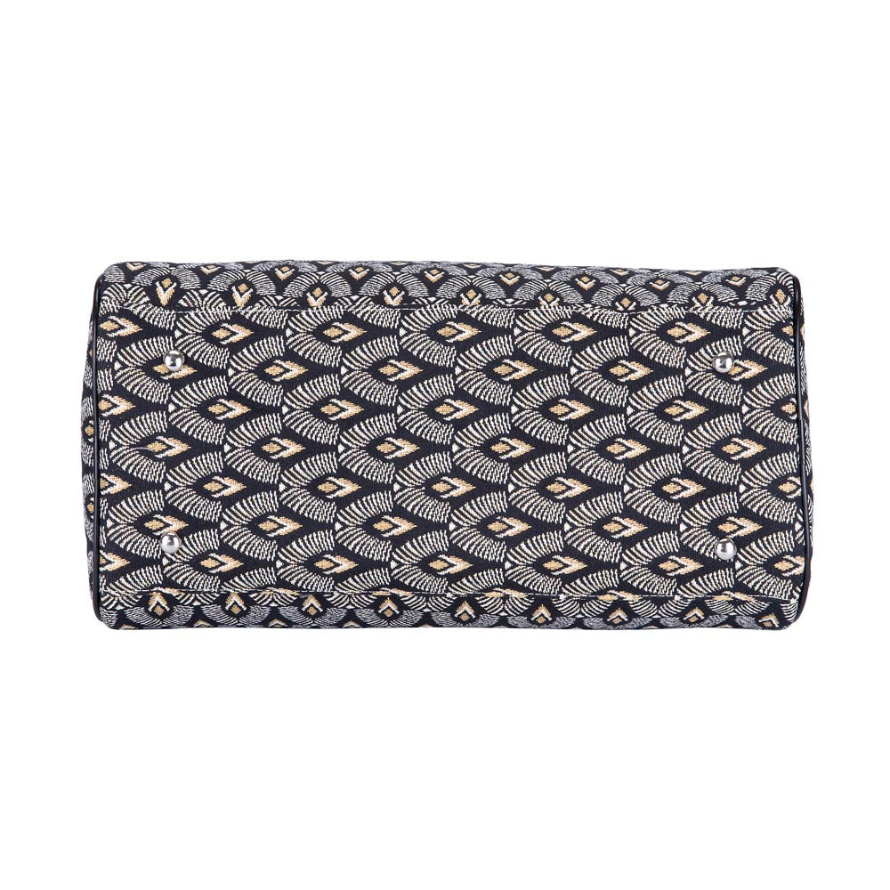 FABRIC COMPOSITION: 100% Polyester.EASY CARE: Clean it with a damp cloth. Do not soak in water.[custom_html]UNIQUE LIFESTYLE DESIGN: The Art Deco trend influence is becoming more prominent in the upcoming year. The Art Deco movement originated in the 1920s and 1930s, which its’ style is recognised by its use of geometric shapes, clean lines and surrealism. This design is inspired by ancient Egyptian symbols in Art Deco style. It is named after the ancient Egyptian city Luxor. PRODUCT DESCRIPTION: A great addition to your travel collection, this tapestry travel bag is courteously designed to provide ample room as a weekend bag or gym bag. Vast amount of room for travel or gym essentials Fastened with a zip top; it also contains an inner zip pocket for storage Fitted with sturdy faux leather handles for carriage Reinforced base contains four studded feet Made from Signare tapestry woven fabrics Size: 15.4 x 10.6 x 7.9 inches – Weight 1.1 lb See All Travel Bag DesignsSee All The Styles/Models in Luxor Collection[/custom_html]