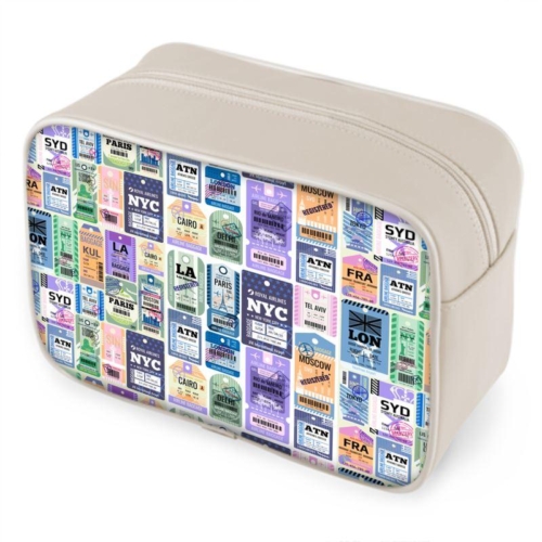 Travel destinations themed designer wash bag by Sorbèy. Sorbèy is a producer of a large range of original products. Clothing for the body. Accessories for the home. Artwork for the soul. Patent Vinyl. 100% poly – satin print area. Piping trim detail. 24 x 16.5 cm x 10 cm. Waterproof lining. Handmade to order.