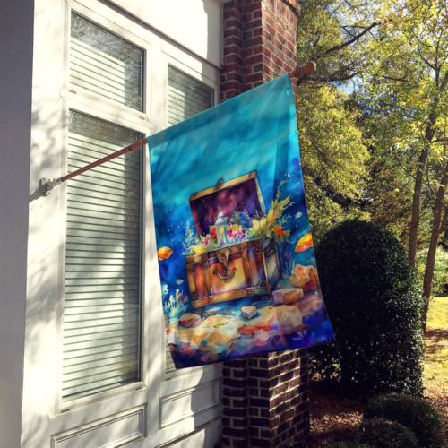 House Flag featuring breed specific Treasure Chest artwork. Presenting our Heavy Duty Polyester House Size Decorative Sleeve Pole Flag, a vibrant addition to enhance the aesthetic appeal of your home. This large decorative flag, measuring approximately 28 x 40 inches, offers ample coverage and visibility. Each flag is meticulously sewn and made individually, ensuring a unique piece that may slightly vary in size. It’s a sleeve pole flag, designed to fit a standard decorative flag pole effortlessly. Please note that the flag pole and bracket are not included and should be purchased separately. What sets our flag apart is its dual-sided print. The design is mirrored on both sides of the fabric, allowing for uniform visibility regardless of the angle. Printed in full color, our flag showcases vibrant hues that truly stand out. To ensure lasting vibrancy and durability, the dyes are heat-set into the fabric. This ensures your flag remains bright and captivating through various weather conditions. Elevate the look of your home with our Heavy Duty Polyester House Size Decorative Sleeve Pole Flag!