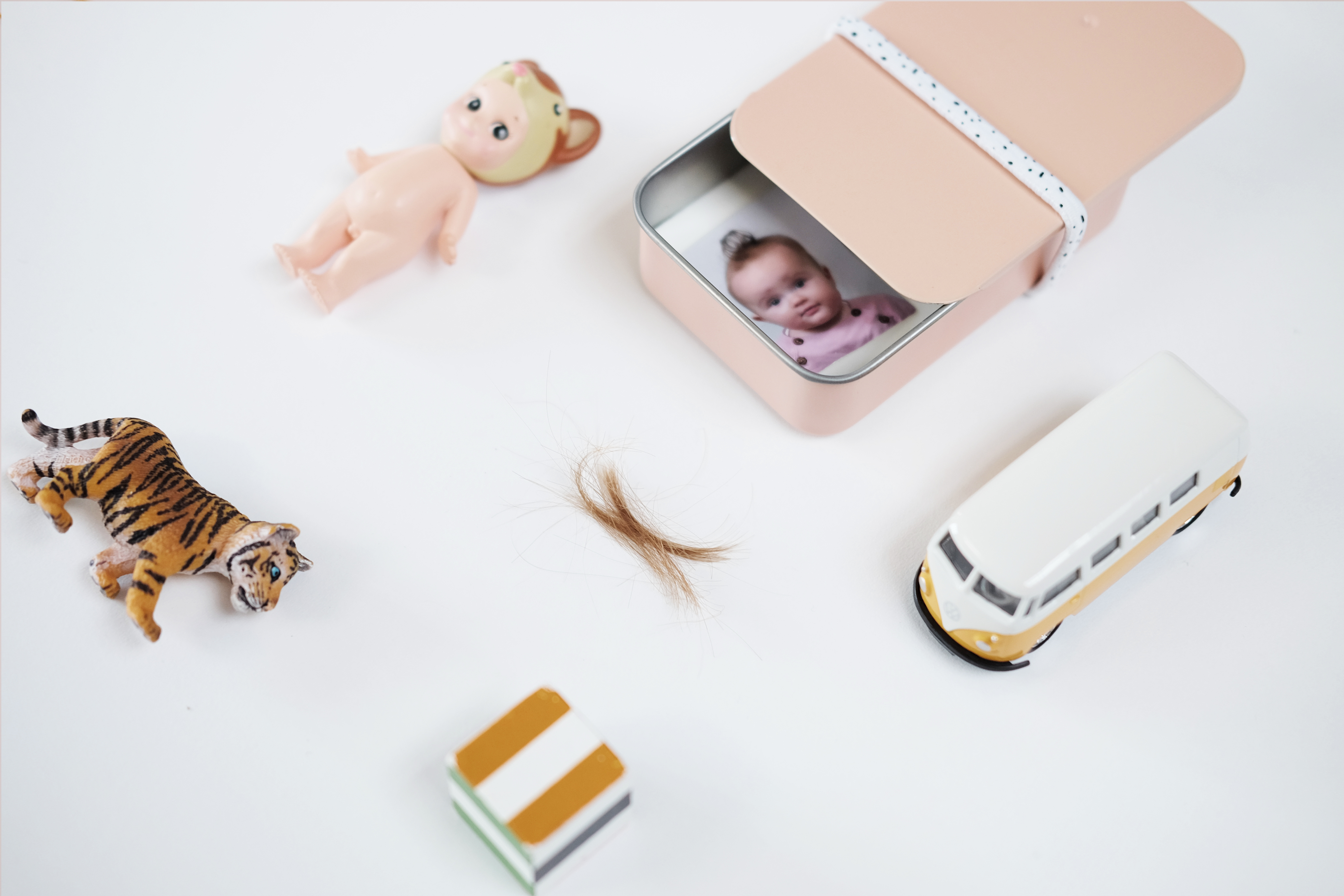 Your Treasure Tin comes with a soft foam base to keep your precious memories safe from dents and damage, a woven elastic band and a small gift / treasure tracking card.