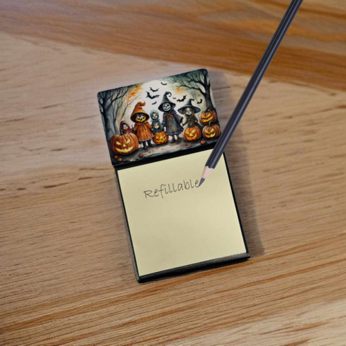 Celebrate Halloween with this Halloween Sticky Note Holder. Add a touch of creativity and flair to your desk with the Decorative Sticky Note Holder from Caroline’s Treasures. This uniquely designed sticky note dispenser will not only keep your notes in one place but also add an artistic element to your workspace. The top of the holder features beautiful artwork that is sure to catch the eye. Crafted for convenience, this sticky note holder comes with a small pad of 3-inch x 3-inch sticky notes at the bottom. The holder is designed for easy refilling; simply remove the last sheet of a new sticky note pad and stick it onto the board. This feature ensures you will always have sticky notes at your disposal. This Sticky Note Holder makes a perfect gift. Be it for your colleagues at work, your Facebook friends, or even your dog groomer or hairdresser, this versatile product fits the bill. You can use it for making grocery lists, leaving notes for loved ones, or for jotting down important reminders. The bottom board is rigid and can be magnetized by adding a business card size magnet to the back (sold separately). This makes it even more versatile, allowing you to place it on a refrigerator or any other magnetic surface. With this Sticky Note Holder, you’re not only organizing your notes, but also personalizing your space.