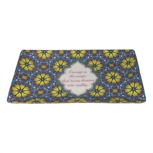 A beautiful new bone china trinket tray embellished with the inspirational wording “Courage is the magic that turns dreams into reality…”.