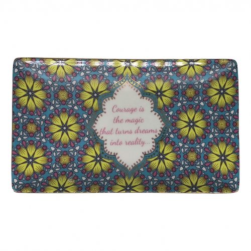 A beautiful new bone china trinket tray embellished with the inspirational wording “Courage is the magic that turns dreams into reality…”.